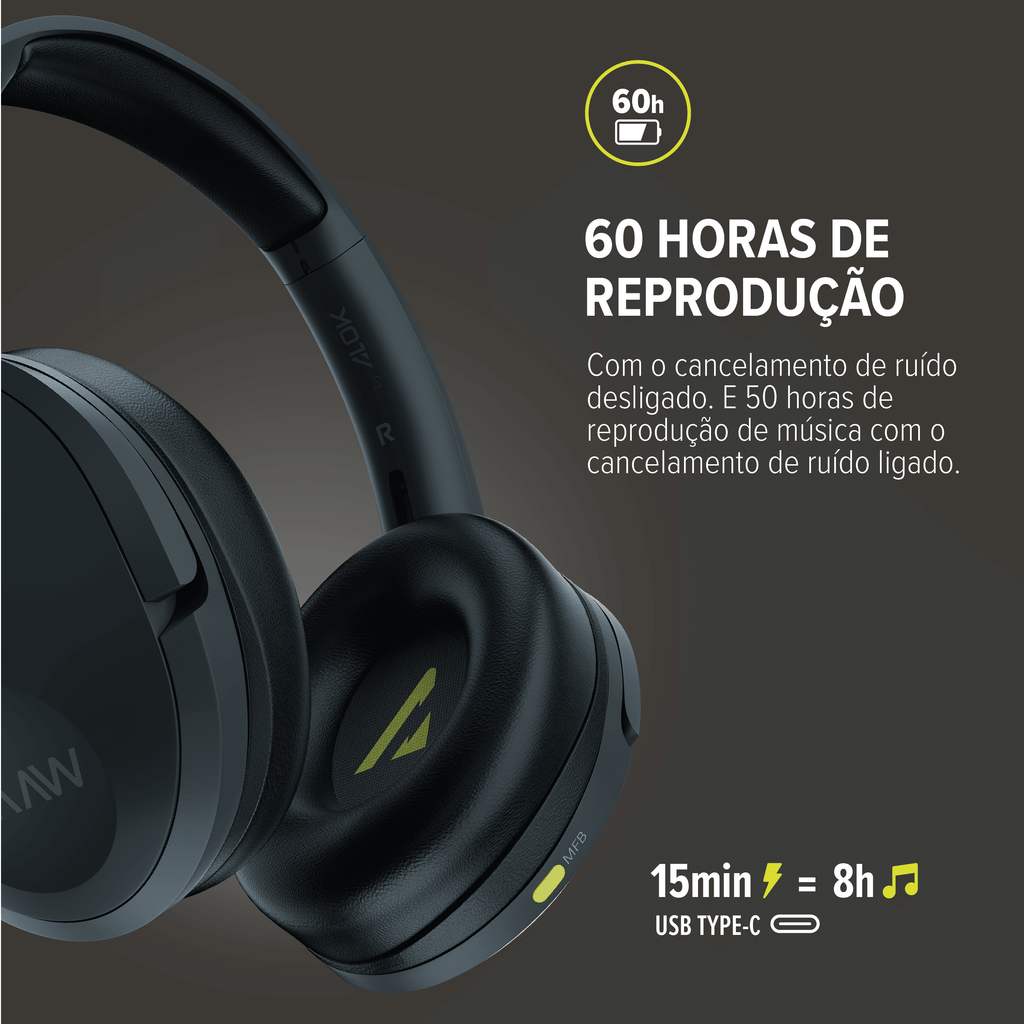 - Até 60 horas de reprodução;