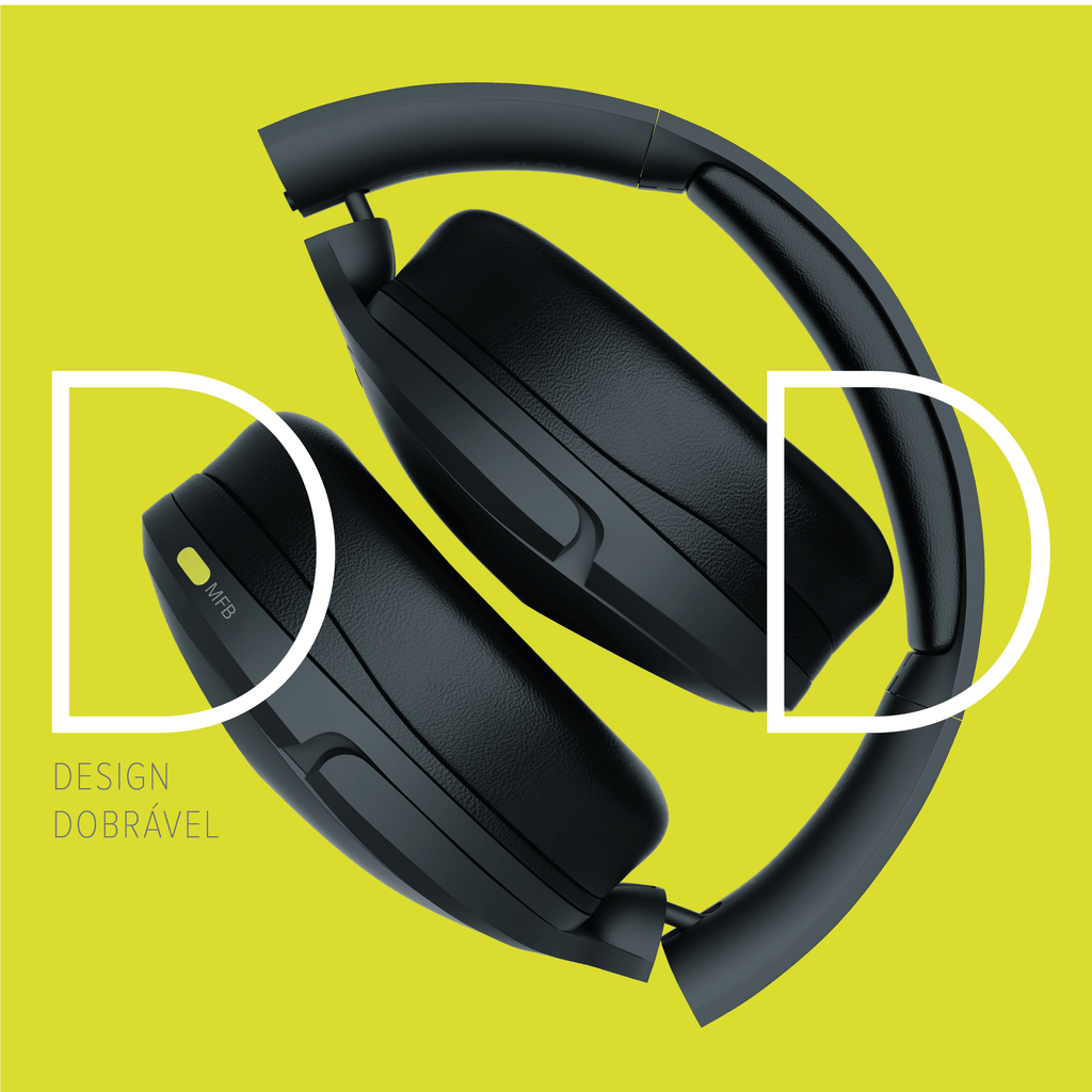 Com conchas articuláveis e design dobrável, é perfeito para guardar na mochila e levar suas playlists para onde for.