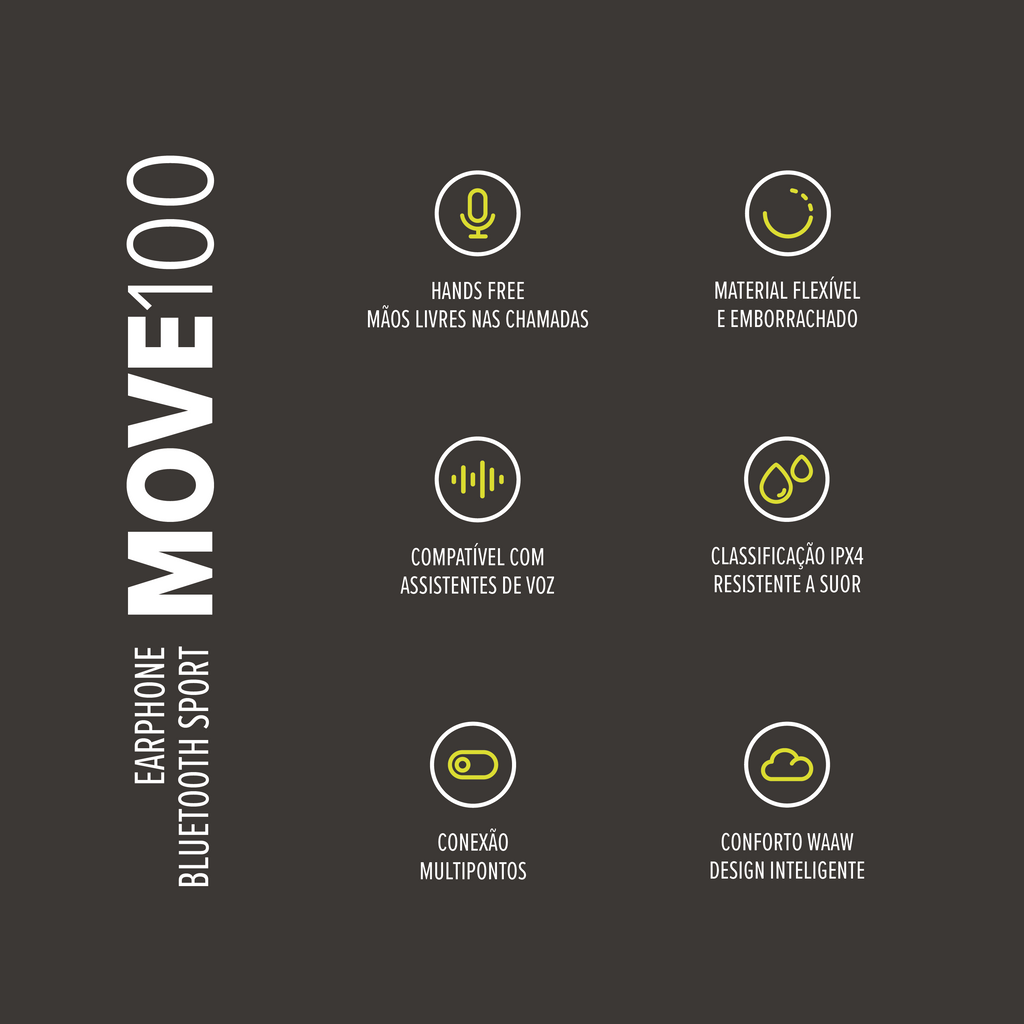 O fone de ouvido esportivo MOVE 100EBS é a escolha perfeita para quem procura conforto para ouvir músicas enquanto pratica atividades físicas. Possui uma bateria de longa duração de até 14 horas, você pode se concentrar no que realmente importa.