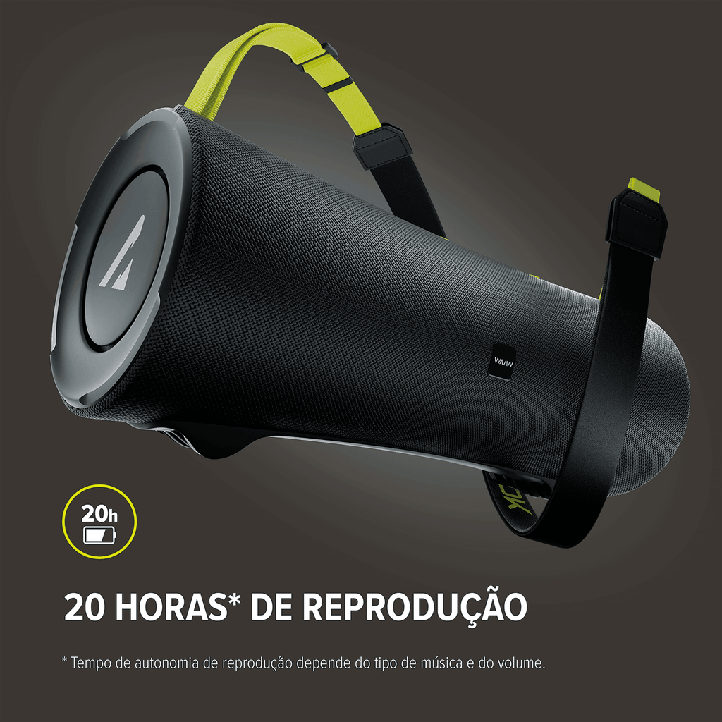 Com até 20 horas de autonomia, você pode desfrutar de sua música favorita sem interrupções, seja em uma festa ou em um acampamento. A tecnologia Bluetooth 5.0 permite que você conecte seu dispositivo sem fio e com facilidade.